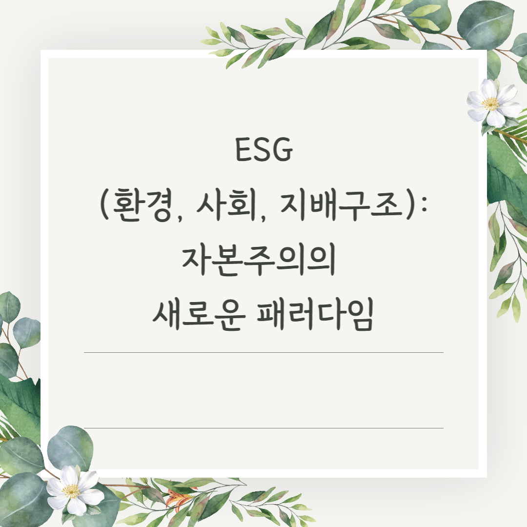 ESG(Environmental, Social, and Governance)는 환경(Environment), 사회(Social), 지배구조(Governance)를 의미하며, 기업의 지속 가능성과 사회적 책임을 강조하는 새로운 경영 패러다임입니다. 최근 기업들은 단순한 이윤 창출을 넘어 ESG 요소를 경영 전략에 포함시키면서 장기적인 성장을 도모하고 있습니다.
