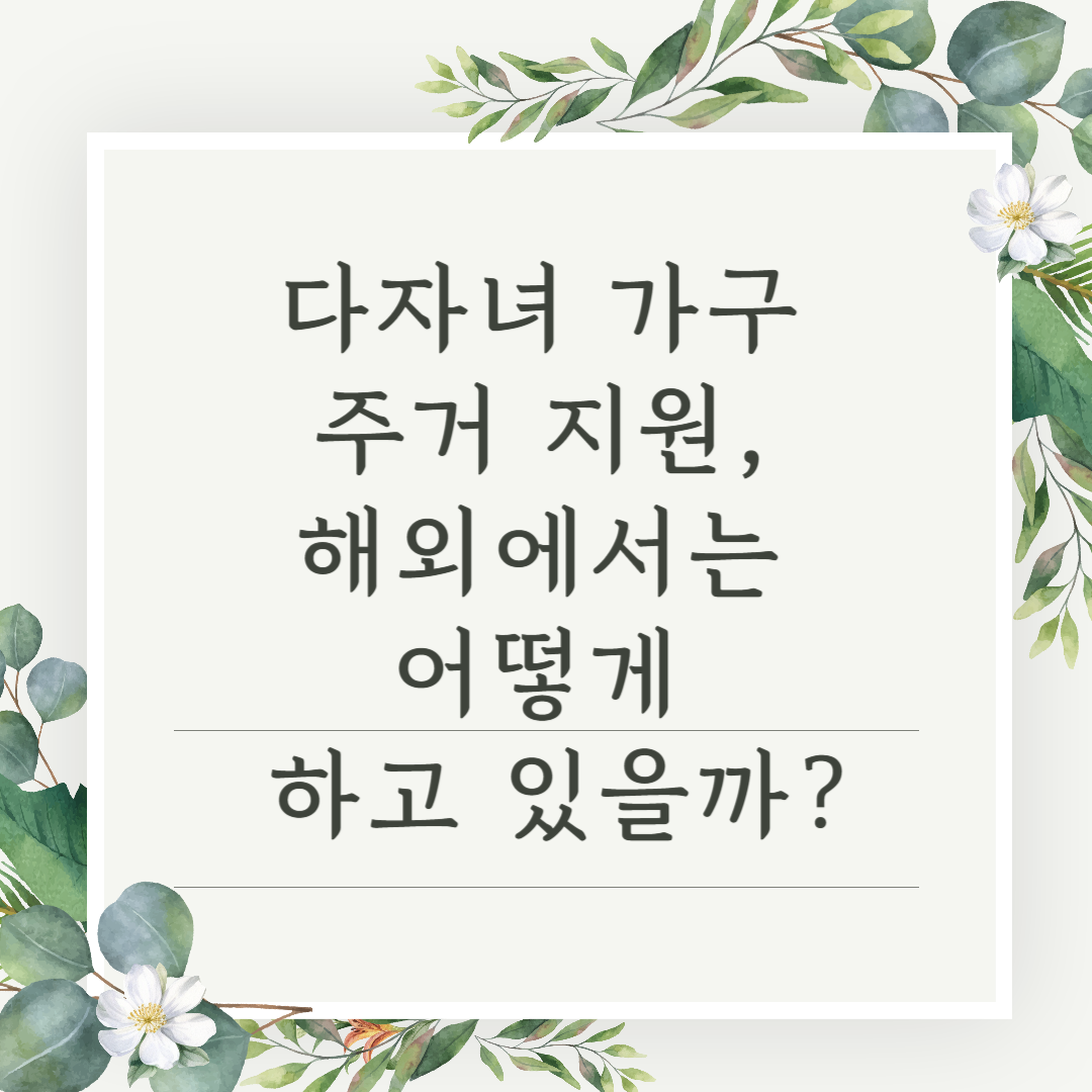 이번 글에서는 프랑스, 독일, 일본, 미국 등 주요 국가들의 다자녀 가구 주거 지원 정책을 비교 분석하고, 한국이 참고할 수 있는 시사점을 찾아보겠습니다.
