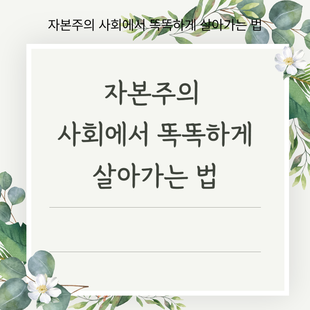 자본주의 사회에서 똑똑하게 살아가기 위해서는 경제적 독립을 이루고, 지속적으로 자기 계발을 하며, 균형 잡힌 삶을 유지해야 합니다. 소비 습관을 조정하고, 금융 지식을 쌓으며, 미래를 위한 투자를 실천하는 것이 자본주의에서 성공하는 핵심 전략입니다. 자본주의의 함정을 피하고, 지속적으로 성장하는 사람이 되어야 합니다.