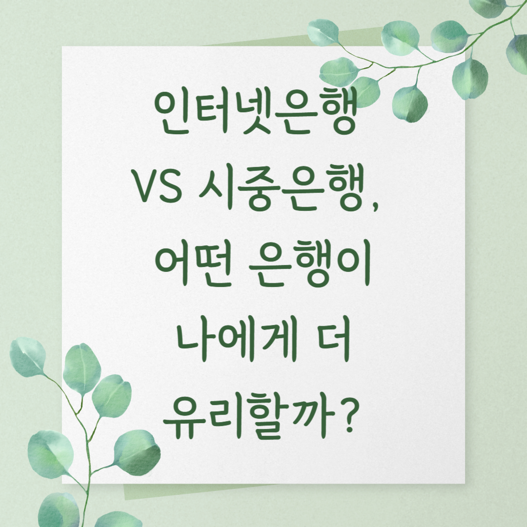 인터넷은행은 간편하고 저렴한 금융 서비스를 원하는 사용자에게 적합하며, 시중은행은 복잡한 금융 상품 이용이나 대면 상담이 필요한 고객에게 유리합니다. 두 은행의 장단점을 잘 비교하여 자신의 금융 스타일에 맞는 선택을 하시기 바랍니다.